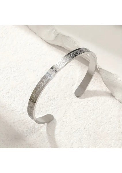 Ayetel Kürsi’nin anlamını modern ve zarif bir tasarımla buluşturan bu özel bileklik, hem estetik hem de anlamlı bir kullanım sunar. Günlük hayatta şıklık ve değerli bir hatırlatıcı arayanlar için ideal bir tercihtir.